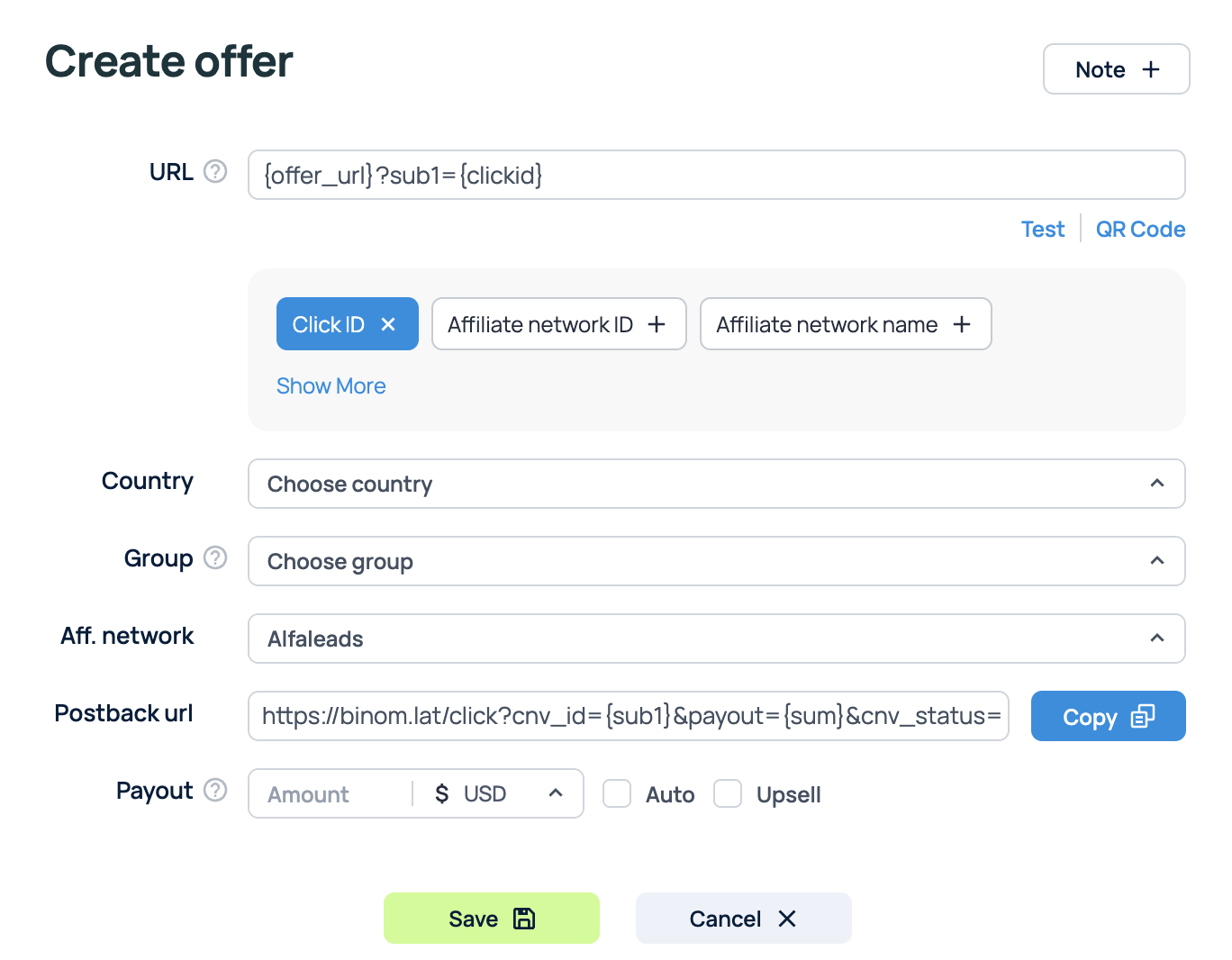 Then you need to specify your postback link in Alfaleads. The link will look like this: