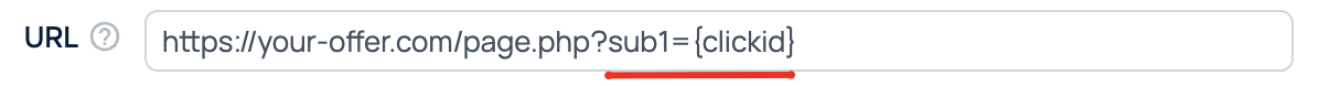 For instance, Alfaleads has the sub1 parameter that we can use to pass {clickid} and then bring it back via postback. To do this, add &sub1={clickid} to your postback link: